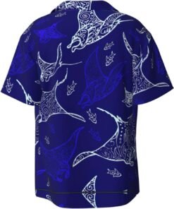 Medium Men Casual Short-Sleeved Shirt – Summer Hawaiian Beach Tops for Outdoor Trips & Everyday Wear Manta Ray and Fish Black