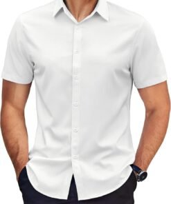 Men Dress Shirts Short Sleeve Wrinkle Free Business Textured Shirt Casual Button Down Shirts
