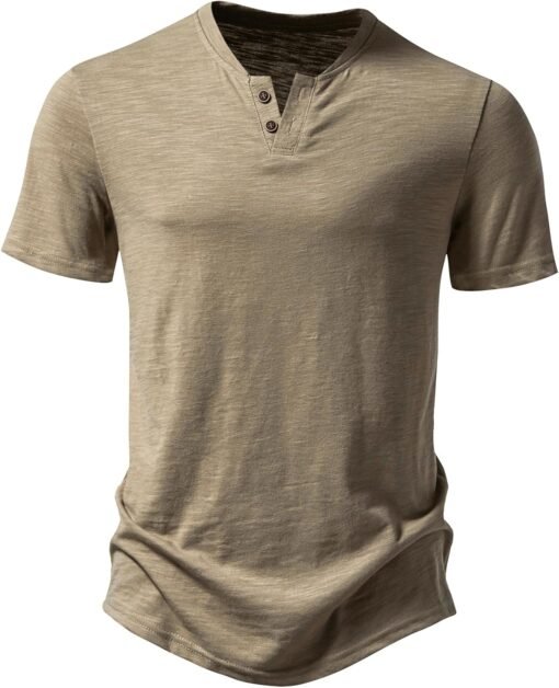 - Design Concept: Classic 2 buttons cutaway collar tee shirt, casual stylish short sleeve v-neck t-shirt ,slim fit ,highly elastic fabric ensures flexible movement