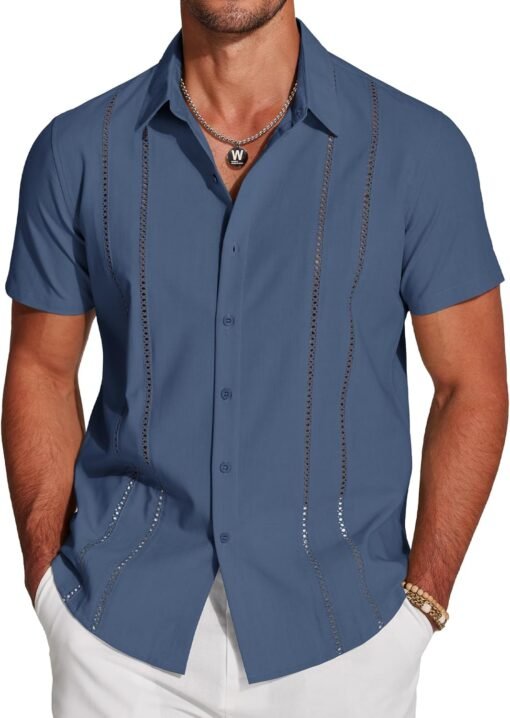 Men’s Cuban Guayabera Shirt Short Sleeve Button Down Shirts Casual Summer Beach Linen Shirts