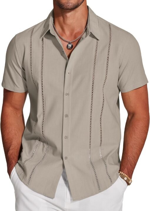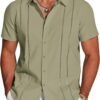 Men’s Cuban Guayabera Shirt Short Sleeve Button Down Shirts Casual Summer Beach Linen Shirts